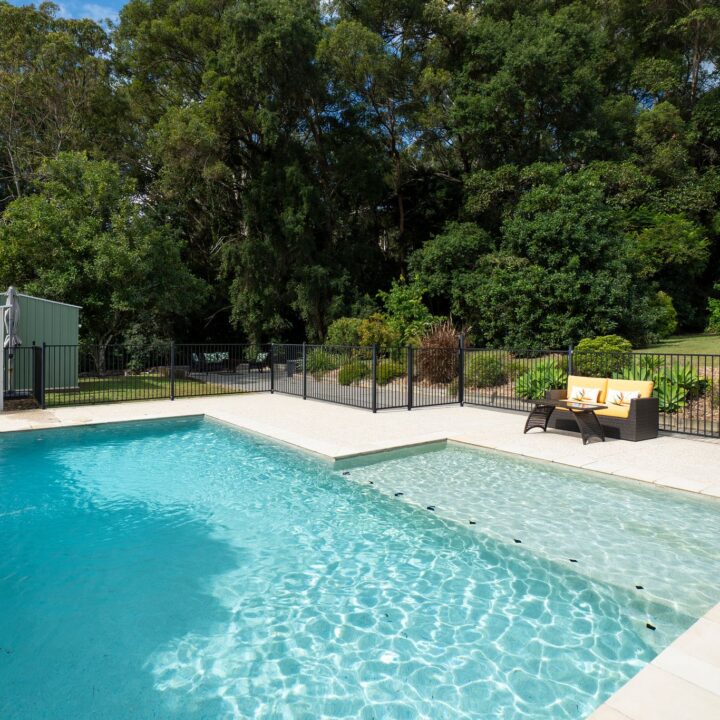 • Covered alfresco entertaining, sparkling inground pool with waterfall