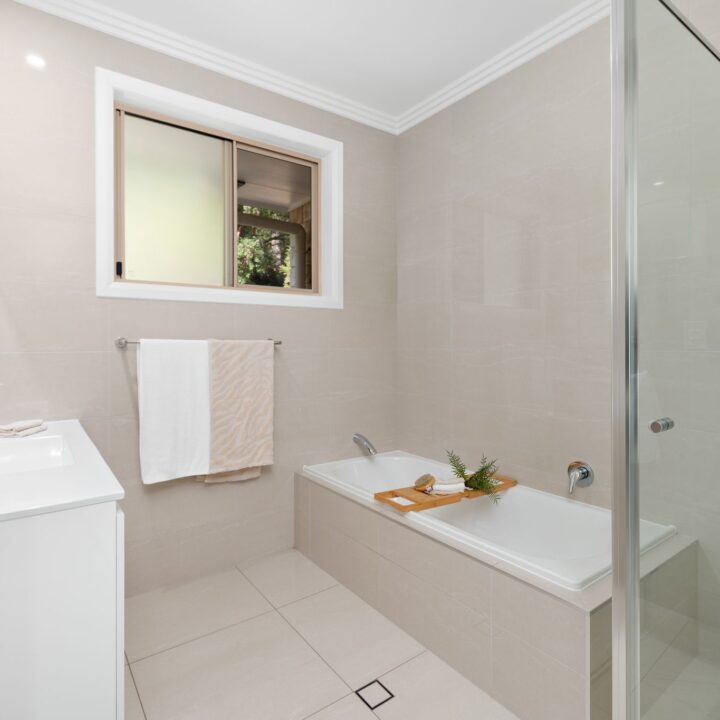 The main residence is designed for relaxed family living and entertaining, and features four bedrooms, two bathrooms, a sleek galley kitchen with walk-in pantry, two separate living areas, a home office, and a sunlit north-east facing alfresco area that overlooks the sparkling inground pool. High ceilings, quality finishes, and thoughtful design ensure comfort and connection, while also giving everyone their own space.