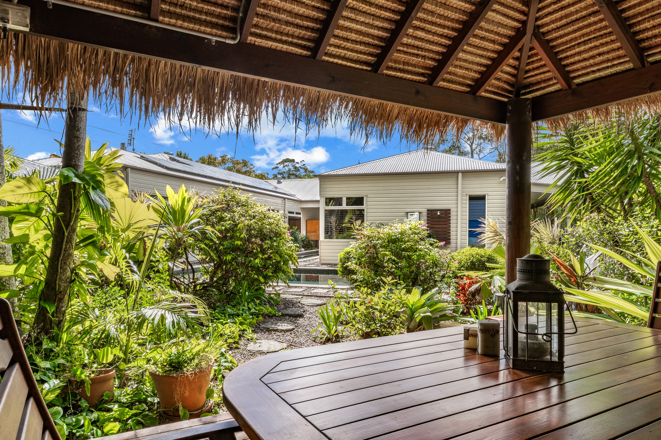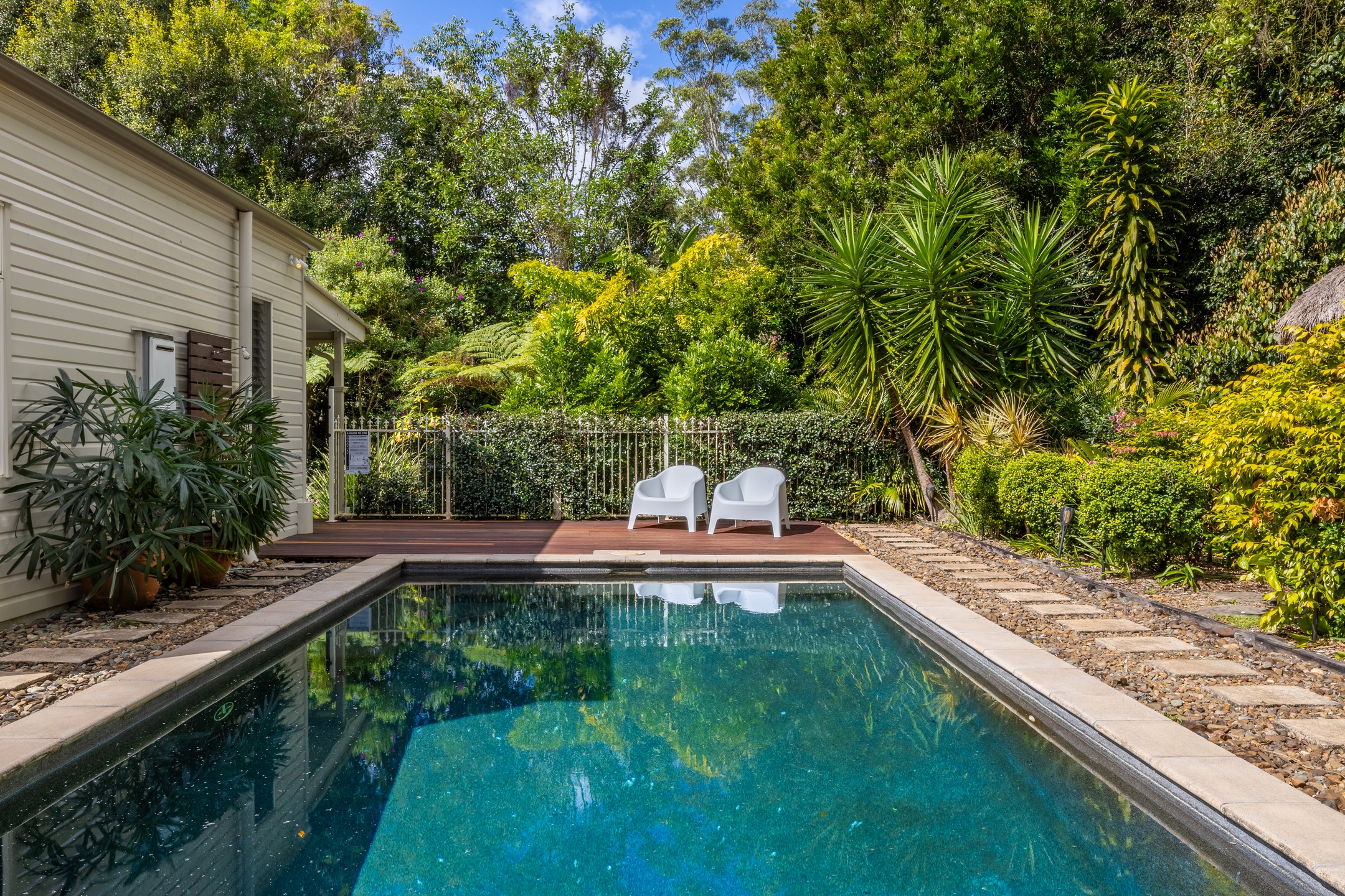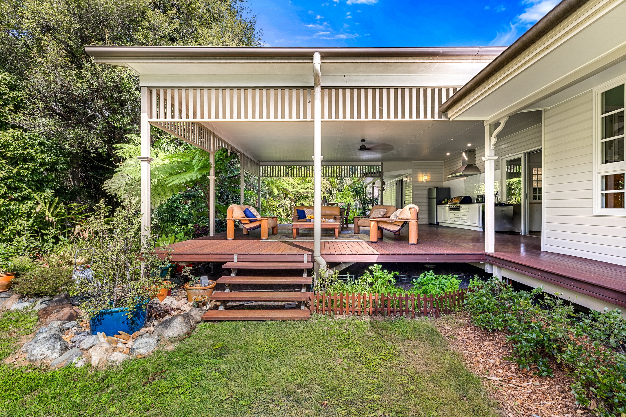 • Large chook run, vegie & herb beds, roses, and landscaped tropical gardens