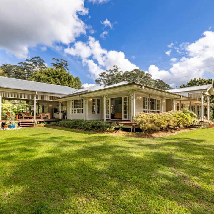Commanding a private 10-acre setting in the rolling hills of West Woombye, Merimere is a modern Queenslander that combines timeless elegance with contemporary liveability. A master-built home, this stunning residence blends classic colonial charm and breezy indoor outdoor flow with the luxury of refined finishes and modern comforts.