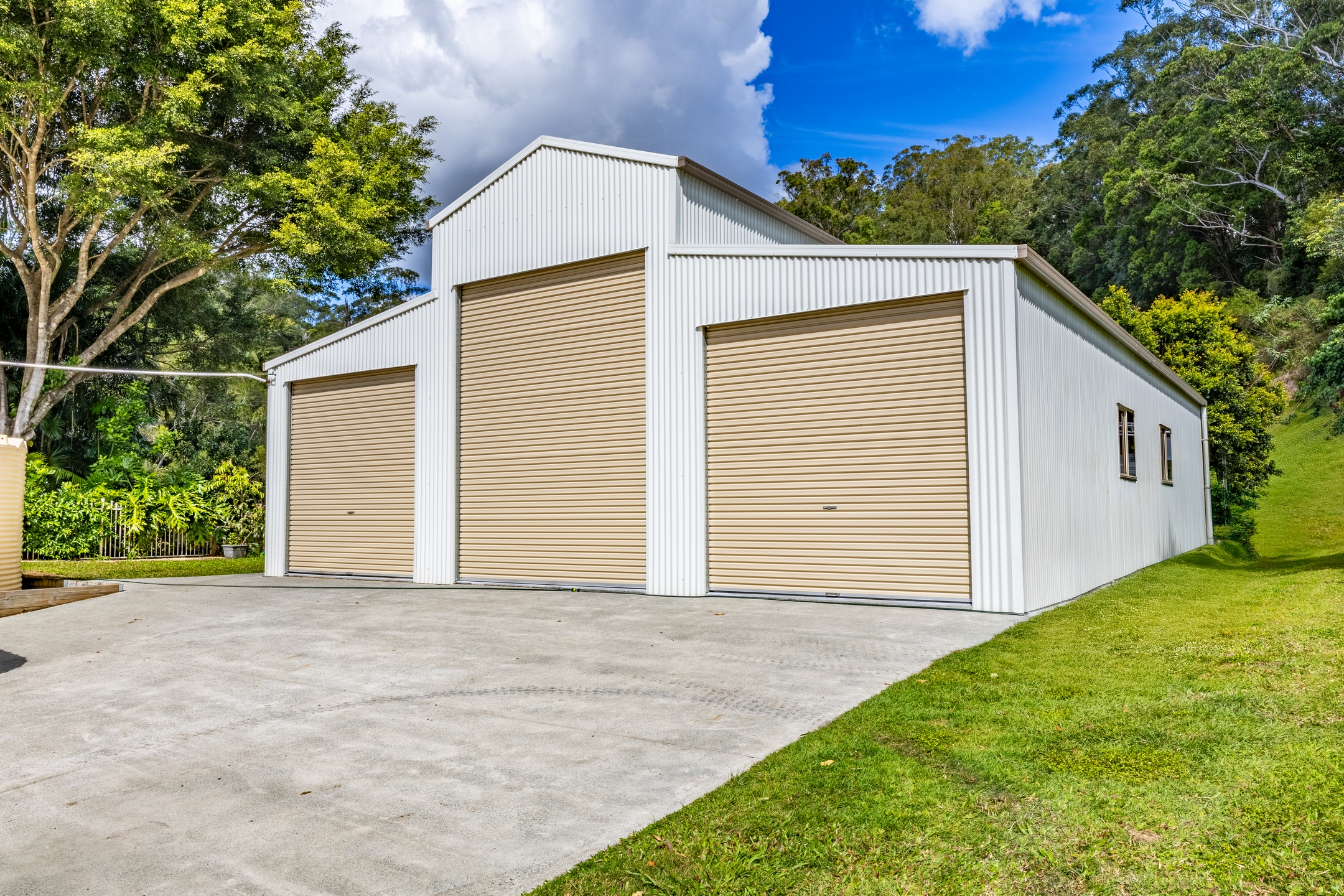 • Huge 14 ÃÆ’Ã’Ãâ€’ÃÆ’â€’ÃÆ’Ò‒- 10.5 m Dutch-barn shed with five roller doors and 3-phase power