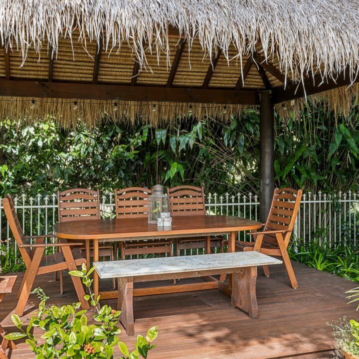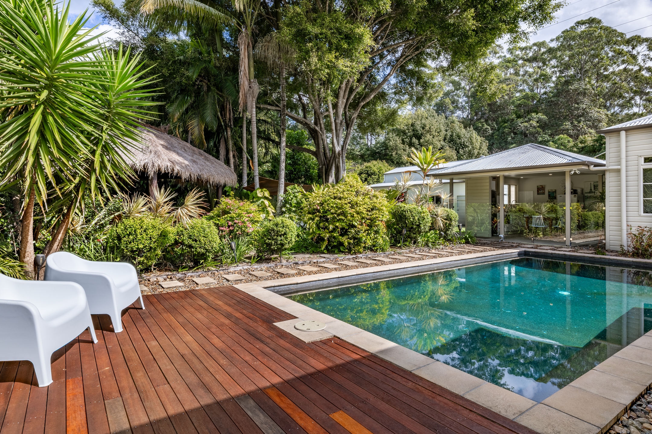 • Expansive 18m saltwater pool with adjacent 5-person spa and Bali hut