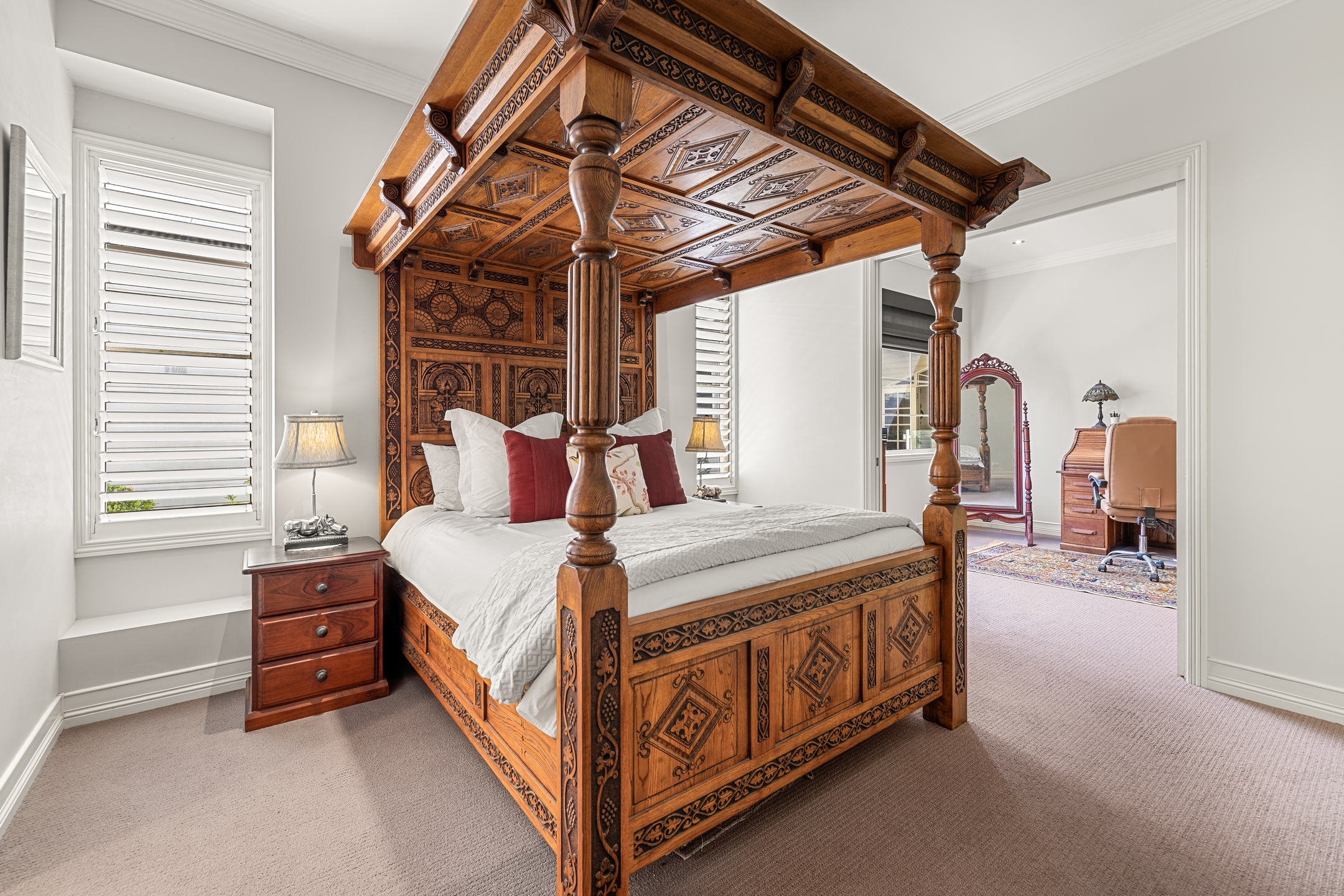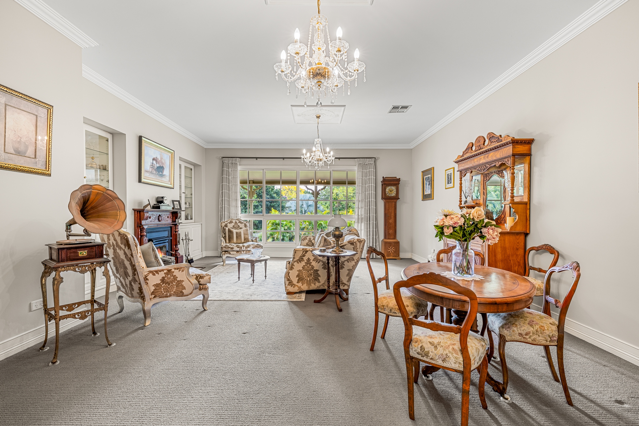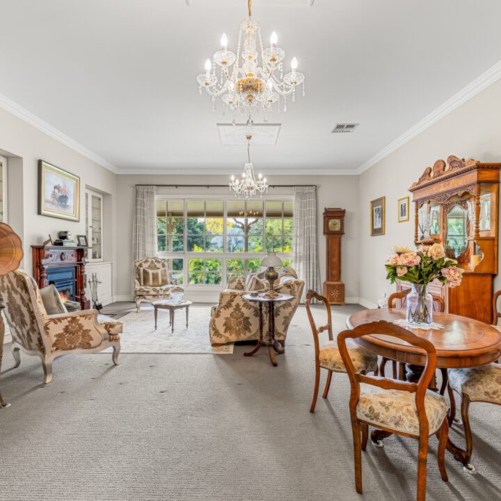 – West wing: Formal lounge with fireplace, media/multipurpose, three additional bedrooms, laundry, main bathroom, powder room and versatile fifth bedroom/sitting room